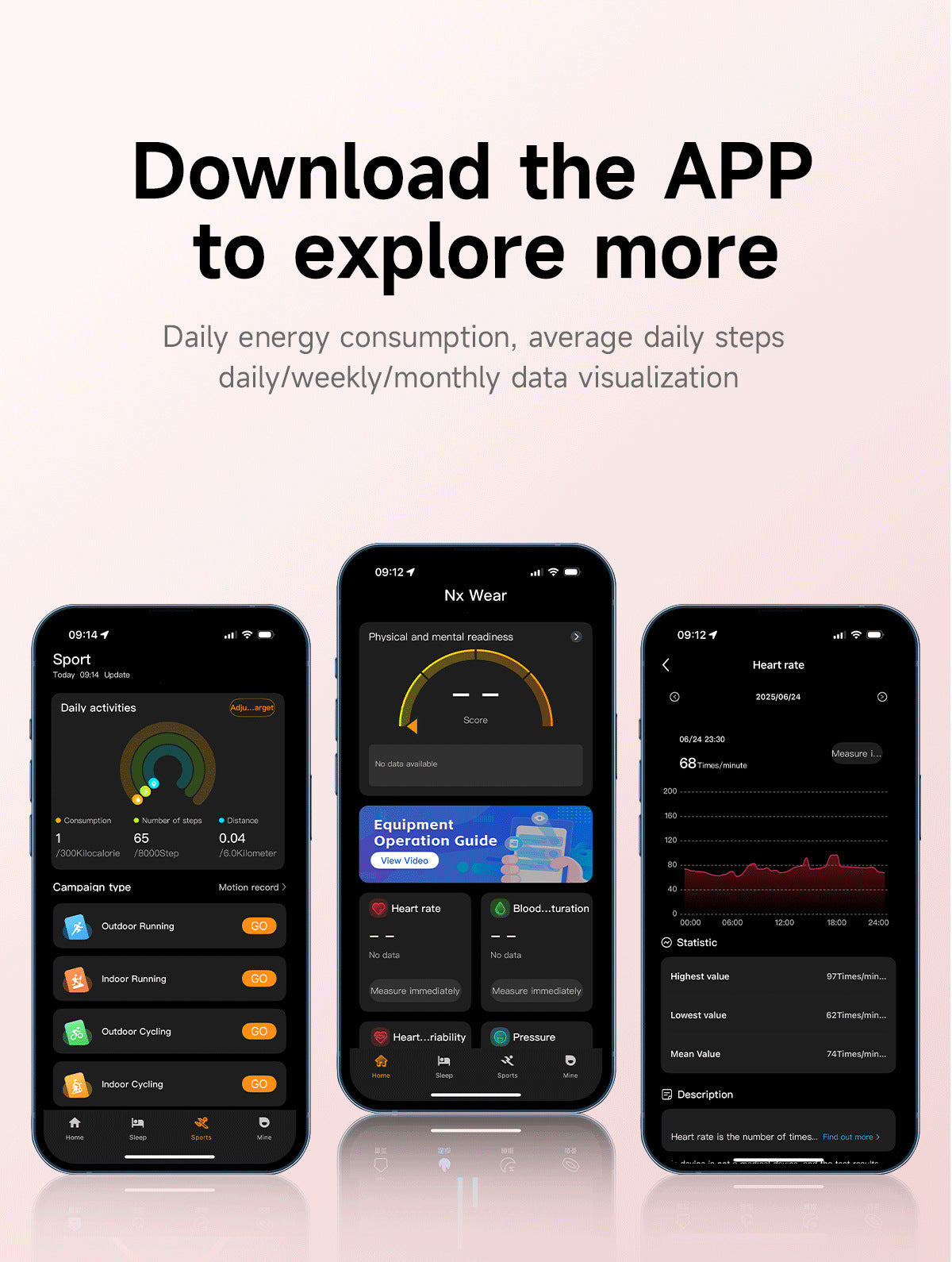 - OLED Touch Display: View heart rate, blood pressure, SpO₂, steps, and sleep at a glance.