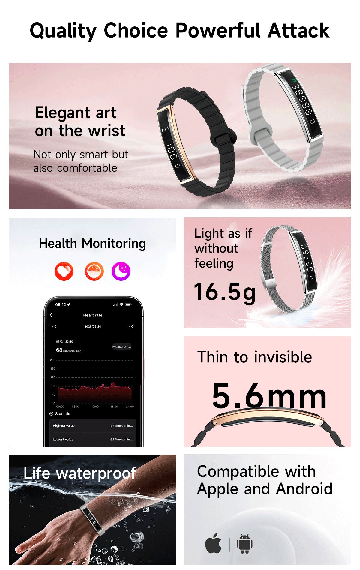 - Waterproof & Elegant Design: IP67 grade and fashion-forward material ideal for daily wear.