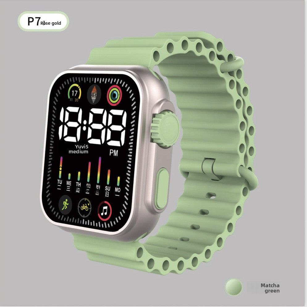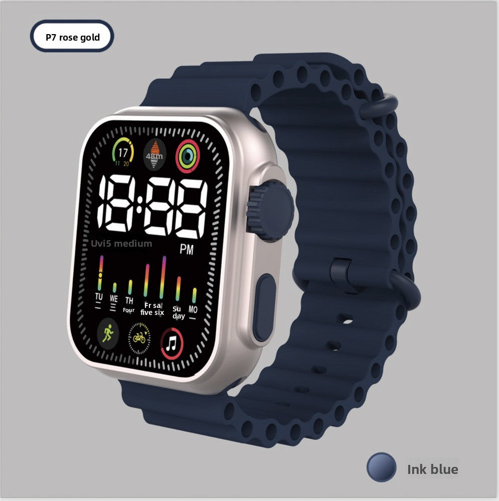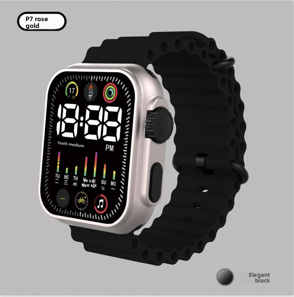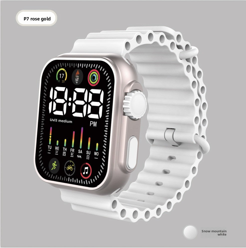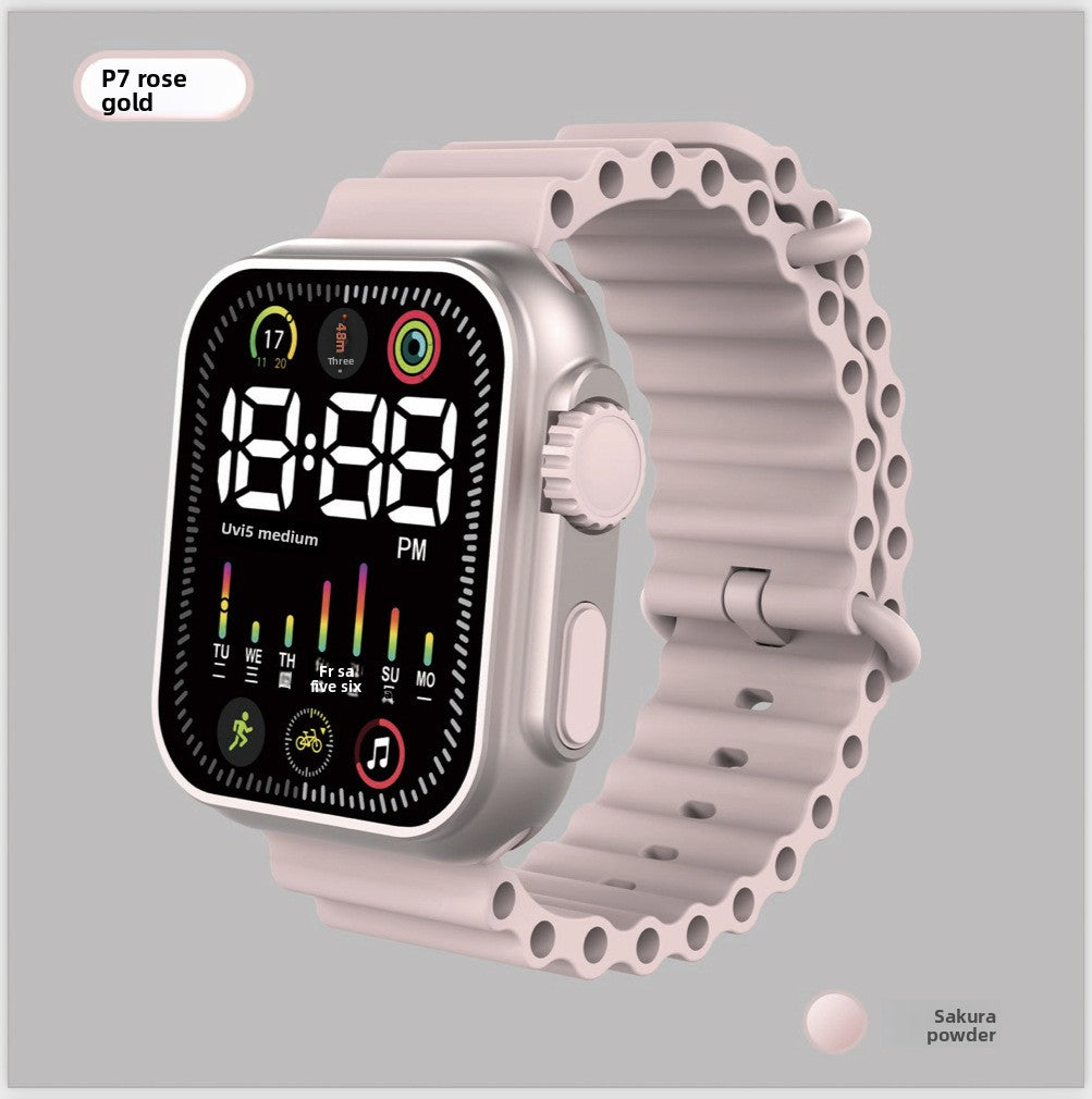 Add a stylish touch to your everyday look with the LED Student Electronic Watch. Featuring a Korean-inspired electroplated design and a unique square button, this watch blends modern aesthetics with practicality.